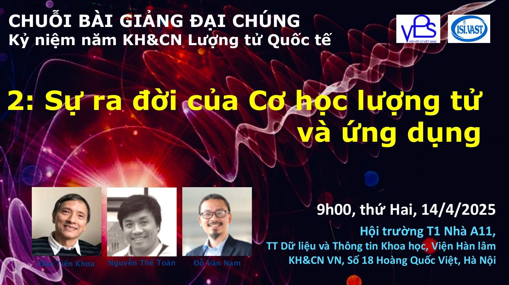 - Advanced Topics in Quantum Physics: From Condensed Matter to Cosmology, Room 315, 10 Dao Tan, Ba Dinh, Hanoi, 14/10/2025 - 14/10/2025