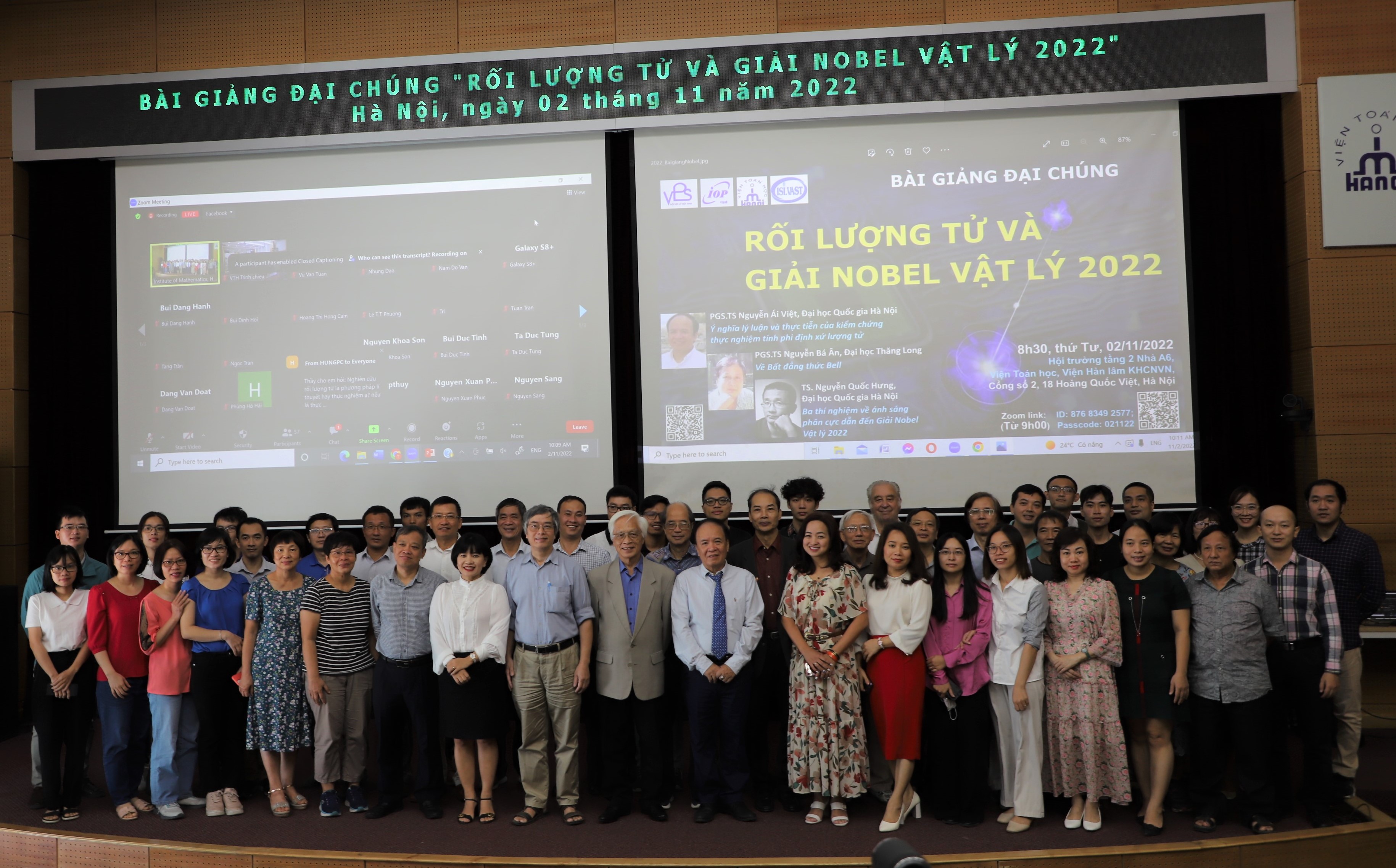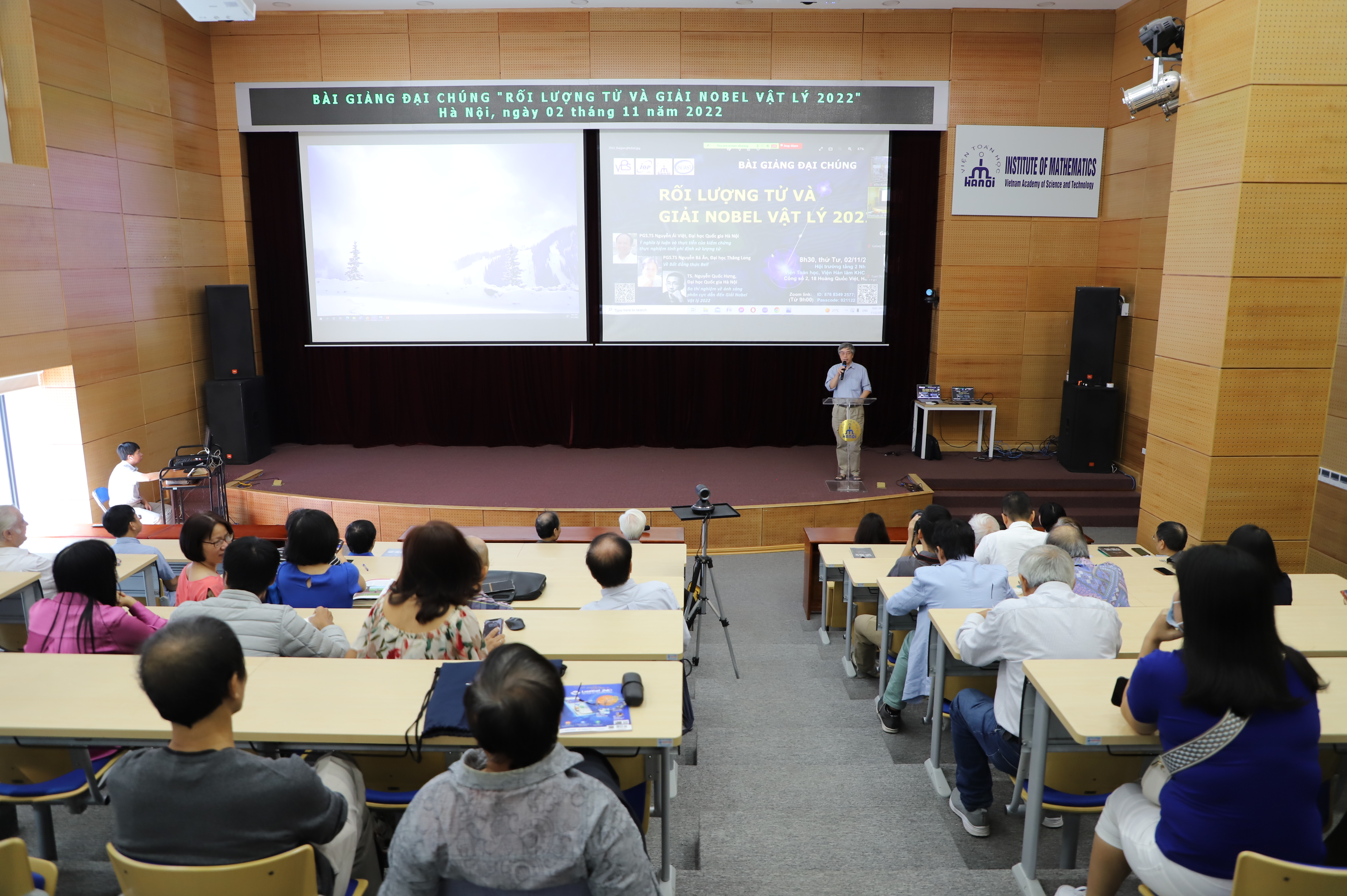 On November 2, 2022, the Institute of Mathematics, the Vietnam Physical Society, the Institute of Physics, and the Center for Information and Documentation jointly organized a public lecture titled “Quantum Entanglement and the 2022 Nobel Prize in Physics.” The event attracted scientists, graduate students, university students, and science enthusiasts, who participated both in person and online.