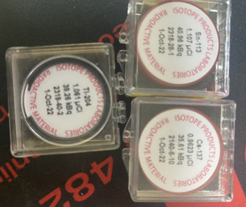 Radioactive source unit with Sn-113, Cs-137, and Tl-204