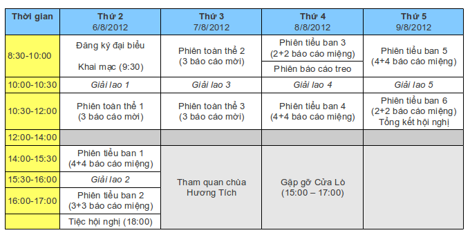 - Các báo cáo miệng với thời gian 20 phút (bao gồm cả thời gian trình bày và thảo luận) trong các phiên tiểu ban. Dự kiến Hội nghị sẽ chia thành 2 tiểu ban: